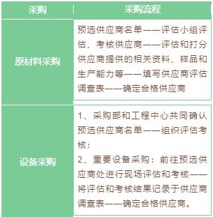 公司采購包括原材料采購和設(shè)備采購,采購流程主要有合格供應(yīng)商選擇、框架合約簽署、供應(yīng)商產(chǎn)品驗證和采購價格談判四個環(huán)節(jié)。