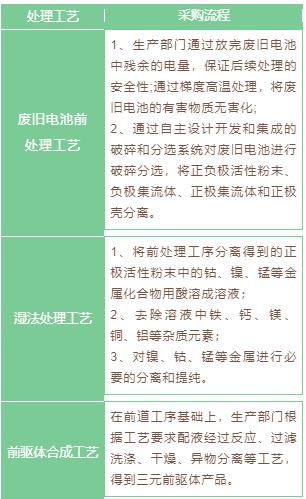 公司通過廣東邦普開展鋰離子電池材料業(yè)務(wù),將廢舊鋰離子電池中的鎳鈷錳鋰等有價金屬通過加工、提純、合成等工藝,生產(chǎn)出鋰離子電池材料三元前驅(qū)體(鎳鉆錳氫氧化物)等,使鎳鈷錳鋰資源在電池產(chǎn)業(yè)中實現(xiàn)循環(huán)利用。