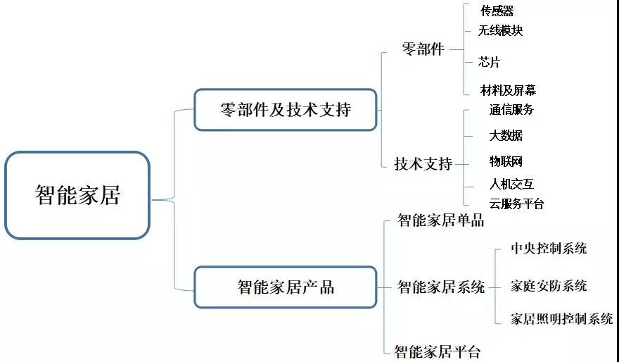 簡(jiǎn)單來(lái)看,智能家居產(chǎn)業(yè)鏈可以看成由兩部分構(gòu)成,即零部件及技術(shù)支持和智能家居產(chǎn)品。