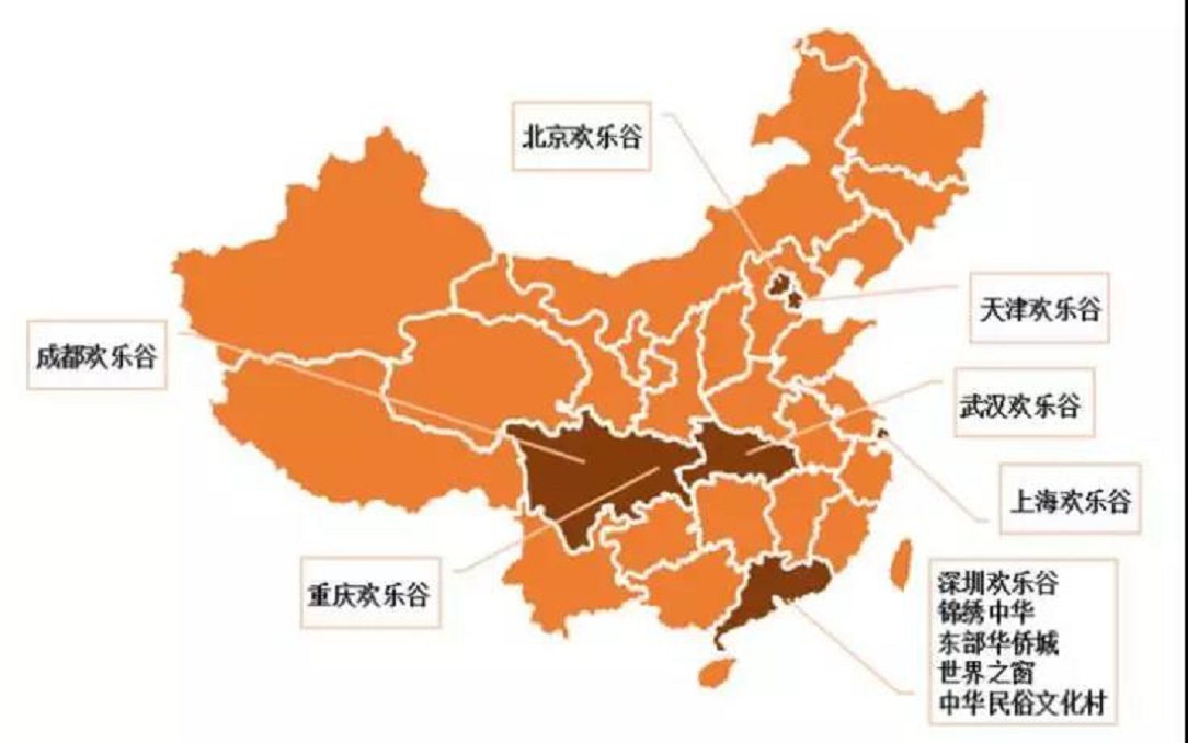 華僑城文旅板塊的重中之重是“歡樂谷”,已在深圳、北京、成都、上海、武漢、天津、重慶這7個城市形成連鎖經(jīng)營,南京、西安歡樂谷在建設(shè)中?!皻g樂谷”的布局集中在經(jīng)濟發(fā)達的一線城市、直轄市和省會城市,重點布局深圳。近年來,除了總部深圳,華僑城在中國旅游資源最豐富的區(qū)域如云南、海南、陜西、四川、山西、北京、河北等地,廣泛布局全域旅游新業(yè)務(wù)。