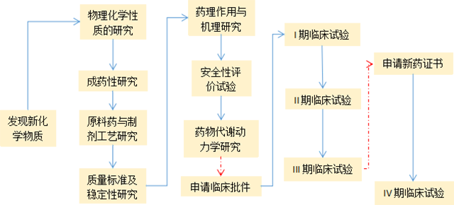 按照工作的性質(zhì),CRO主要分為臨床前研究(Pre-Clinical)CRO和臨床研究CRO。臨床前研究階段包含物理化學(xué)性質(zhì)的研究等,臨床研究階段包含I期臨床試驗等,具體可參考新藥研發(fā)流程(如圖1)。