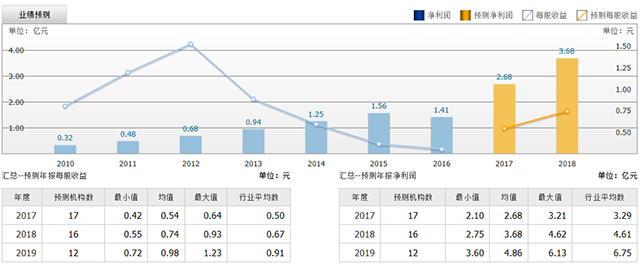 截至2017年7月17日,6個月以內(nèi)共有 17 家機構(gòu)對泰格醫(yī)藥的2017年度業(yè)績作出預(yù)測;預(yù)測2017年每股收益 0.54 元,較去年同比增長 80%,預(yù)測2017年凈利潤 2.68 億元,較去年同比增長 90.4% 。