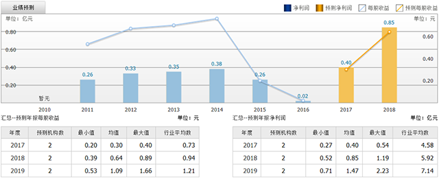 截至2017年7月17日,6個月以內(nèi)共有 2 家機構(gòu)對博濟醫(yī)藥的2017年度業(yè)績作出預(yù)測;預(yù)測2017年每股收益 0.30 元,較去年同比增長 1810.83%,預(yù)測2017年凈利潤 0.40 億元,較去年同比增長 1832.84%。