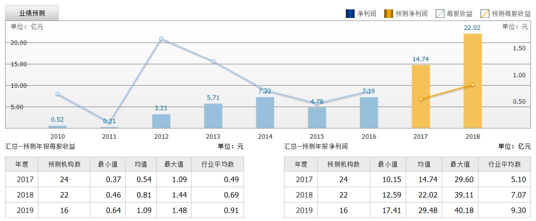 截至2017年8月3日,6個月以內(nèi)共有 24 家機(jī)構(gòu)對歐菲光的2017年度業(yè)績作出預(yù)測。預(yù)測2017年每股收益 0.54 元,較去年同比下降 21.65%;預(yù)測2017年凈利潤 14.74 億元,較去年同比增長 105.09% 。