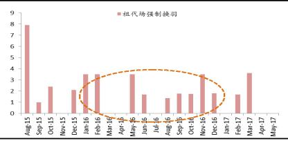祖代場(chǎng)強(qiáng)制換羽主要集中在 16 年