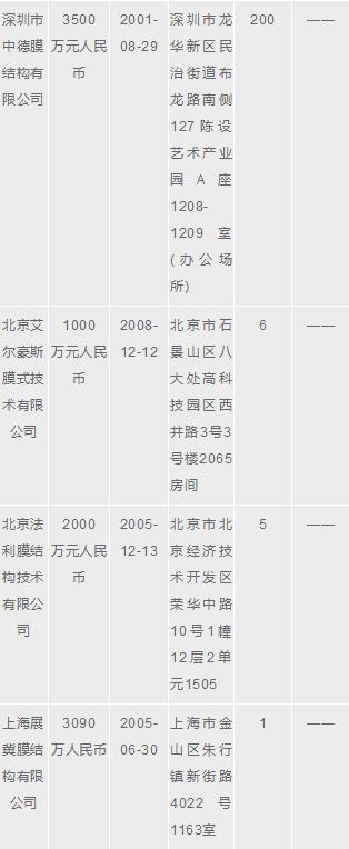 目前,國內(nèi)有一定規(guī)模的氣膜建筑廠商數(shù)量不超過10家。在應(yīng)用最廣的體育氣膜市場(chǎng)方面,位于行業(yè)前四名的北京約頓氣膜建筑技術(shù)股份有限公司(以下簡(jiǎn)稱為:約頓、約頓氣膜)約頓氣膜、北京艾爾豪斯膜式技術(shù)有限公司(以下簡(jiǎn)稱為:艾爾豪斯)、深圳市博德維環(huán)境技術(shù)股份有限公司(以下簡(jiǎn)稱為:深圳博德維、博德維)、北京法利膜結(jié)構(gòu)技術(shù)有限公司(以下簡(jiǎn)稱為:北京法利)四家公司占據(jù)了90%以上的市場(chǎng)。目前氣膜市場(chǎng)最具有技術(shù)優(yōu)勢(shì)的兩家公司約頓氣膜和深圳博德維占據(jù)了整體市場(chǎng)2/3的份額,其他廠商整體技術(shù)能力比較薄弱,訂單搶占能力相對(duì)較弱,不過在巨頭產(chǎn)能有限的情況下仍然有生存的空間。
