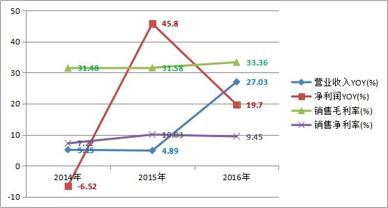 博德維2016年?duì)I業(yè)收入為98846037.97元,增長(zhǎng)52.60%;毛利潤為39.08%;歸屬于掛牌公司股東的扣除非經(jīng)常性損益后的凈利潤為16699082.32元,增長(zhǎng)107.34%;基本每股收益為0.81元/股,增長(zhǎng)102.50%。