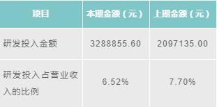 2016年,維拓環(huán)境研發(fā)投入金額為3288855.60元,相較2015年有所增長(zhǎng)。維拓環(huán)境研發(fā)投入占營業(yè)收入的比例,由2015年的7.70%下降為2016年的6.52%。