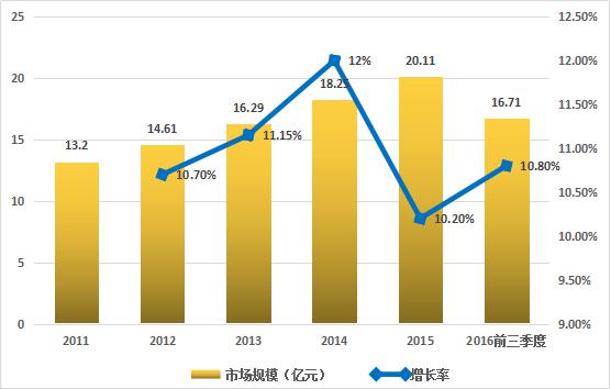 圖1 2011年—2016年前三季度全球