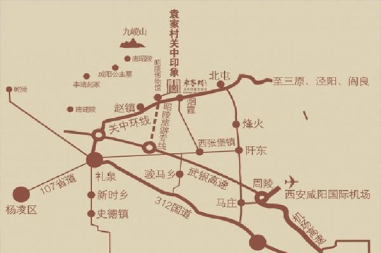 袁家村位于咸陽(yáng)市禮泉縣,距離咸陽(yáng)國(guó)際機(jī)場(chǎng)較近,空運(yùn)便利,有利于吸引國(guó)際旅客前來觀光體驗(yàn)。附近機(jī)場(chǎng)高速、武銀高速、312國(guó)道、107省道、關(guān)中環(huán)線等道路密布,交通發(fā)達(dá),西安至禮泉、西安至袁家村、咸陽(yáng)至袁家村的客運(yùn)大巴發(fā)車頻率高,游客無論是乘大 巴還是自駕游都很便利。